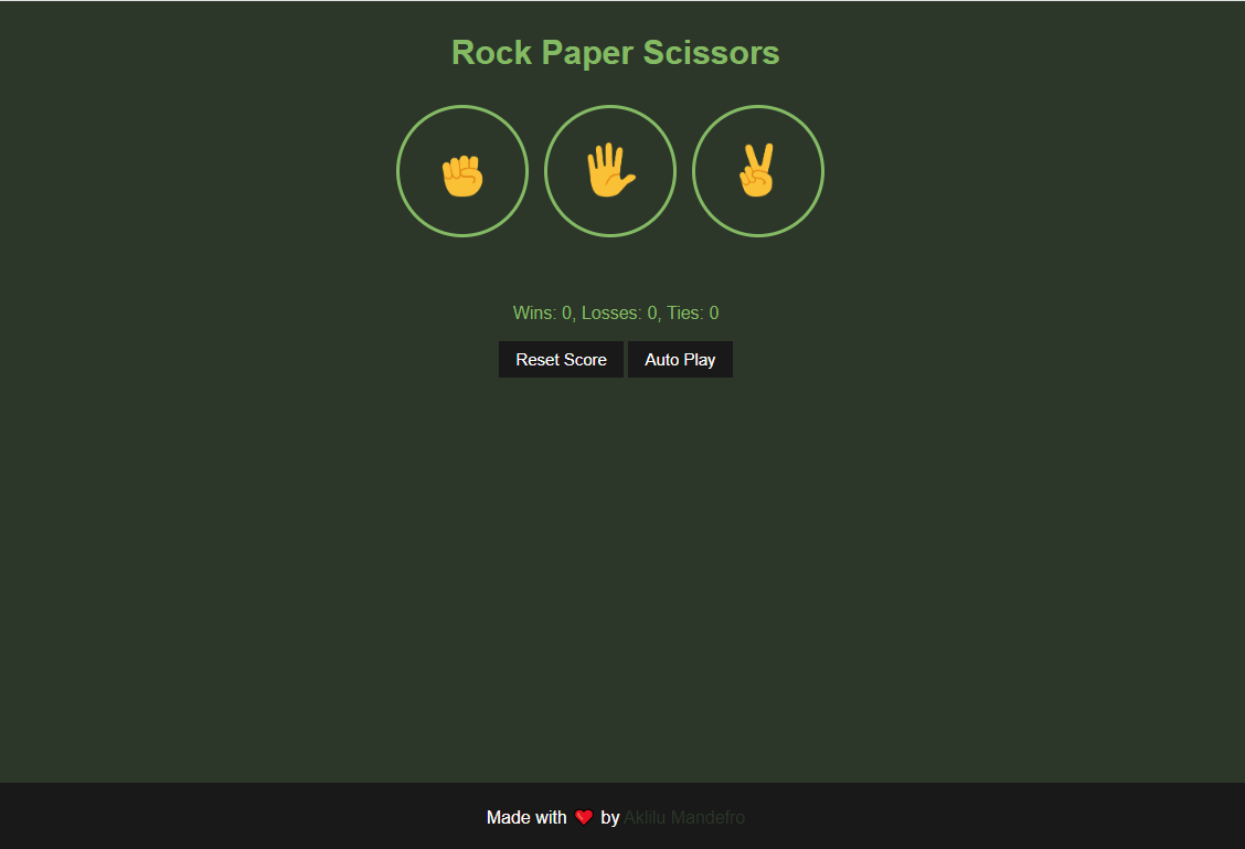 This is a beginner-friendly rock paper scissors game app made with vanilla JavaScript ( means JavaScript with no frameworks), HTML, and CSS .