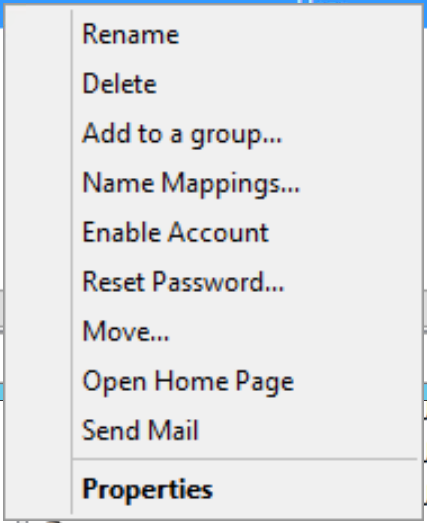 Users should be able to perform object changes that are available in ActiveDirectory via the right-click context menu: