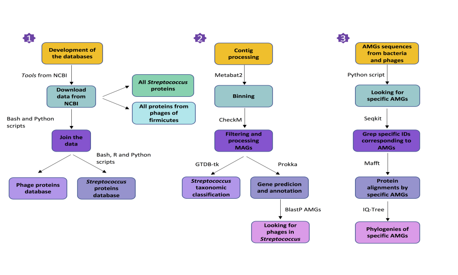 • To associate phages with classified Streptococcus bins by looking for Auxiliary Metabolic Genes (AMGs) in both bacteria and viruses.