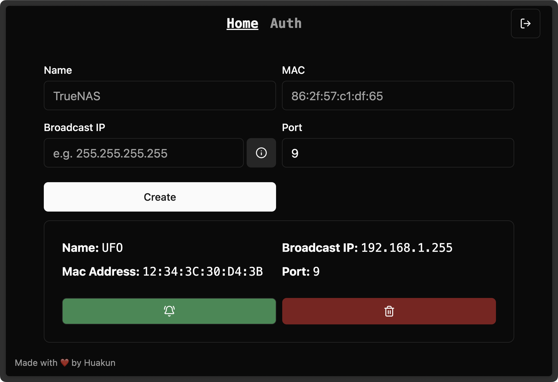In the new rewrite, instead of writing an entire rest API server and manage database with gorm, I use PocketBase as backend and database. Its golang extension feature allows me to add the wakeonlan feature easily. The most complicated part, Auth, is also fully handled by PocketBase, saving lots of time. PocketBase also has a built-in database management UI, making user creation/management much easier.
