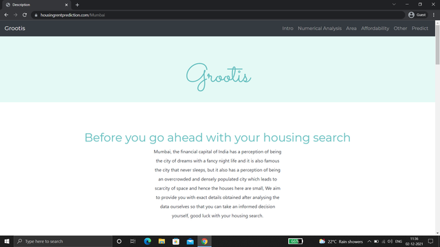 - Contains a detailed analysis for the houses in that city to help the user in making an informed decision