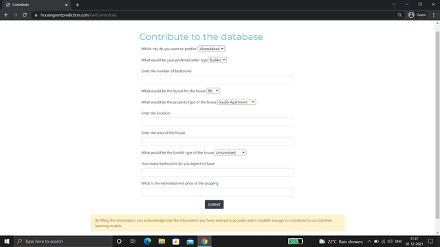 This project uses a machine leraning model in the backend to predict the rent prices in various cities using the inputs given to it