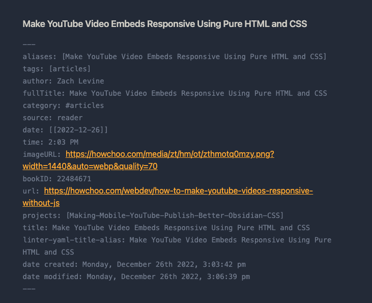 Readwise/Articles/Make YouTube Video Embeds Responsive: (note the projects YML key matching the one in Resources)Result