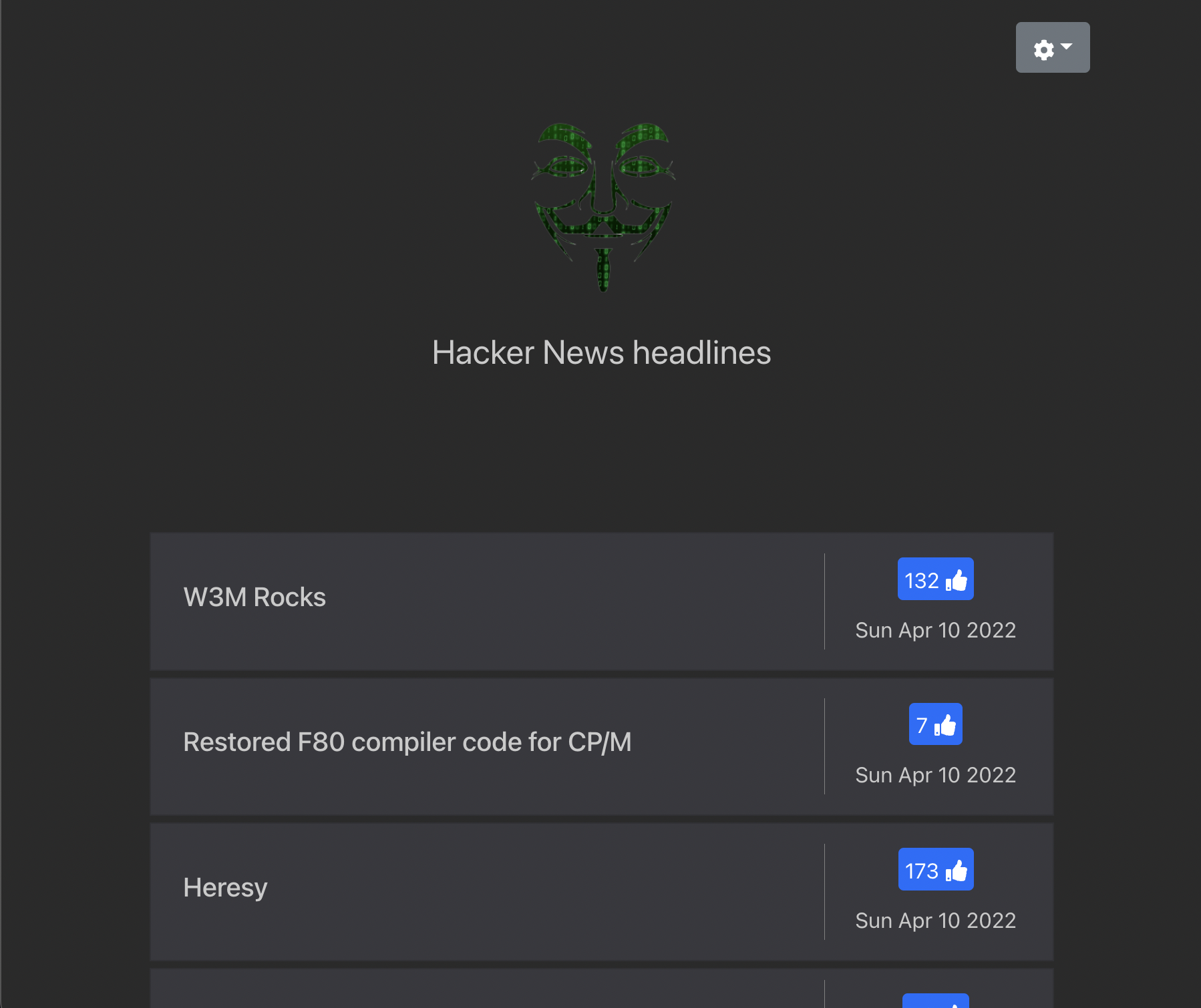 npm startThis runs the app in the development mode and will automatically open in the browser for viewing on localhost:8080.