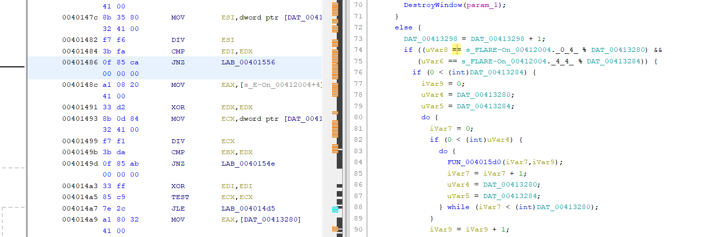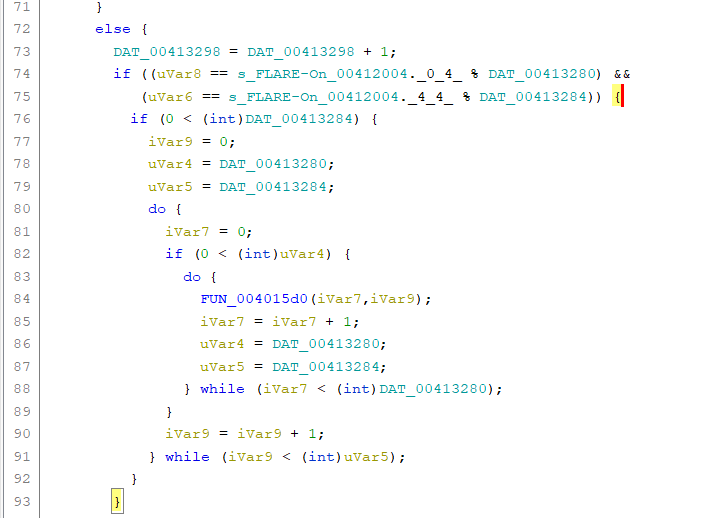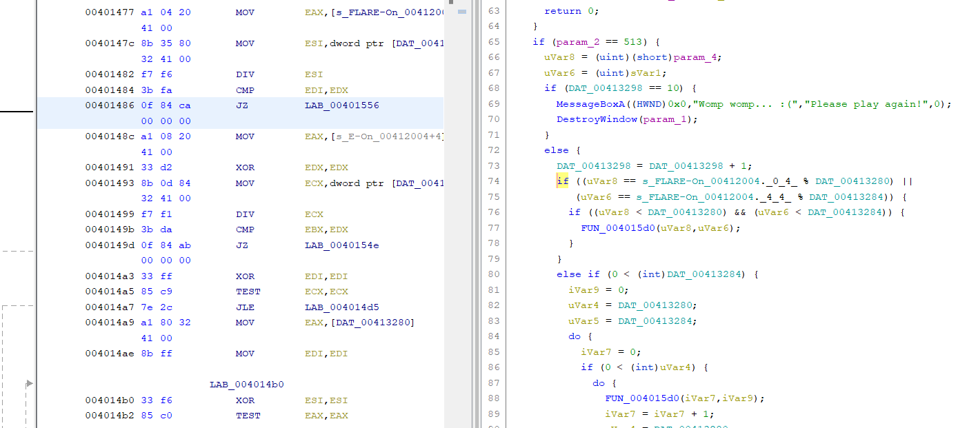 因此就可以找到 FUN_004012c0 這個函數,看起來是判斷一些選單的函式,應該也有判斷點到的位置的相關處理程式